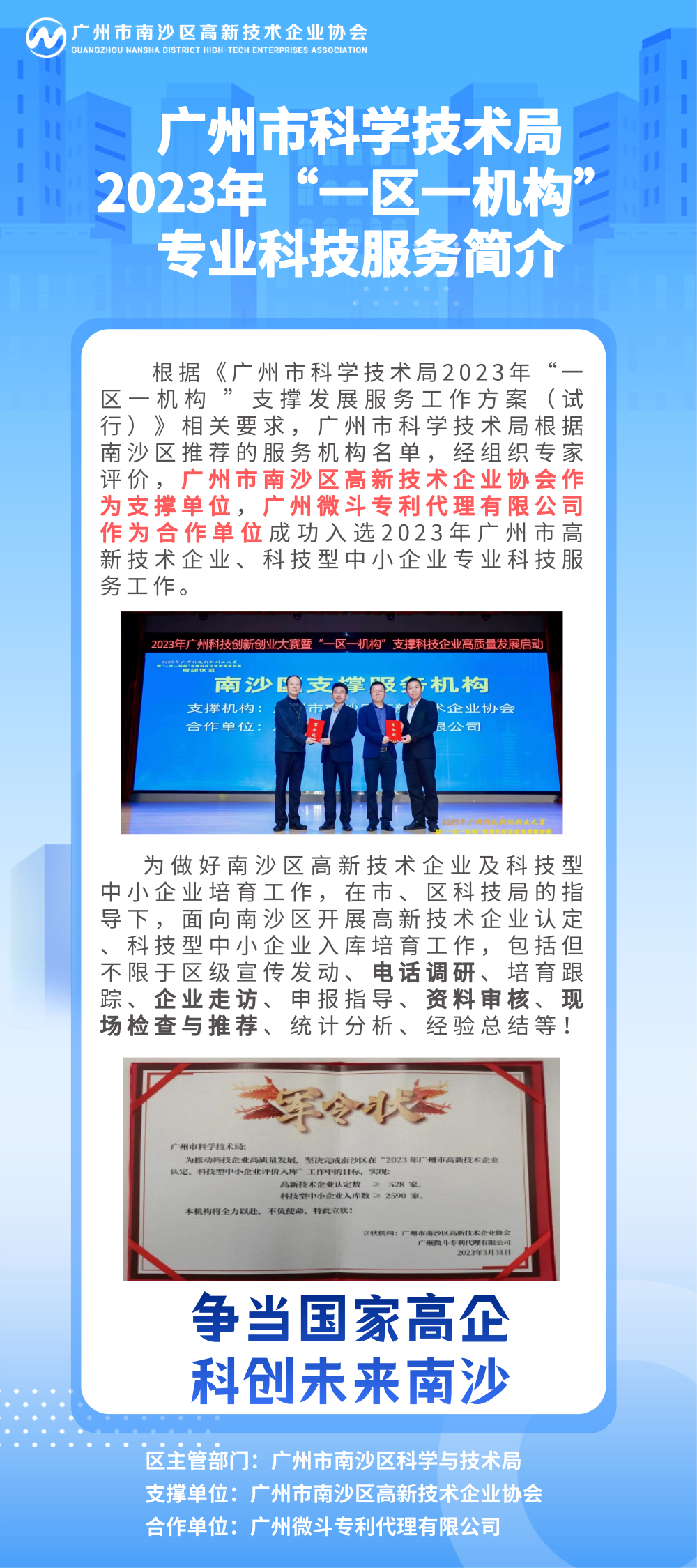 為做好廣州市“一區(qū)一機構(gòu)”科技企業(yè)高企認定和科小入庫服務工作,進一步輔導企業(yè)做好申報規(guī)劃。2023年6月9日至6月15日,廣州市一區(qū)一機構(gòu)科技企業(yè)服務工作組【支撐單位廣州市南沙區(qū)高新技術(shù)企業(yè)協(xié)會、合作單位廣州微斗專利代理有限公司】先后為廣州南方仕通網(wǎng)絡(luò)科技有限公司、廣州三五汽車部件有限公司、廣州市寶桃食品有限公司、廣州思德隆電子有限公司、眾一金屬(廣州)股份有限公司、廣東招陽光伏科技有限公司、廣州平云小匠科技有限公司、廣州三豐檢測技術(shù)有限公司、廣州易幫客環(huán)保科技有限公司、廣州JFE鋼板有限公司、廣州遠正智能科技股份有限公司、廣州偉岸科技有限公司、廣州市合抱木建筑技術(shù)有限公司、廣州市通上德智能裝備有限公司、廣州志趣游樂設(shè)備有限公司等15家企業(yè)在高企認定和科小入庫方面“問診把脈”,為企業(yè)申報提供有力的支持與幫助。