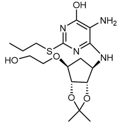 | ALIAS | 5-amino-6-(((3aS,4R,6S,6aR)-6-(2-hydroxyethoxy)-2,2-dimethyltetrahydro-4H-cyclopenta[d][1,3]dioxol-4-yl)amino)-2-(propylthio)pyrimidin-4-ol |