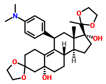 | ALIAS | (5a,11b)-11-[4-(Dimethylamino)phenyl]-5,17-dihydroxy-19-norpregn-9-ene-3,20-dionecyclicbis(1,2-ethanediylacetal) |