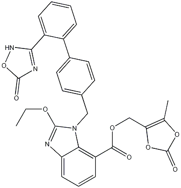 | 別名 | 1-[[2'-(2,5-二氫-5-氧代-1,2,4-惡二唑-3-基)[1,1'-聯(lián)苯]-4-基]甲基]-2-乙氧基-1H-苯并咪唑-7-羧酸 (5-甲基-2-氧代-1,3-二惡茂-4-基)甲酯;1-[[2'-(2,5-二氫-5-氧代-1,2,4-惡二唑-3-基)[1,1'-聯(lián)苯]-4-基]甲基]-2-乙氧基-1H-苯并咪唑-7-羧酸 (5-甲基-2-氧代-1,3-二惡茂-4-基)甲酯; |
